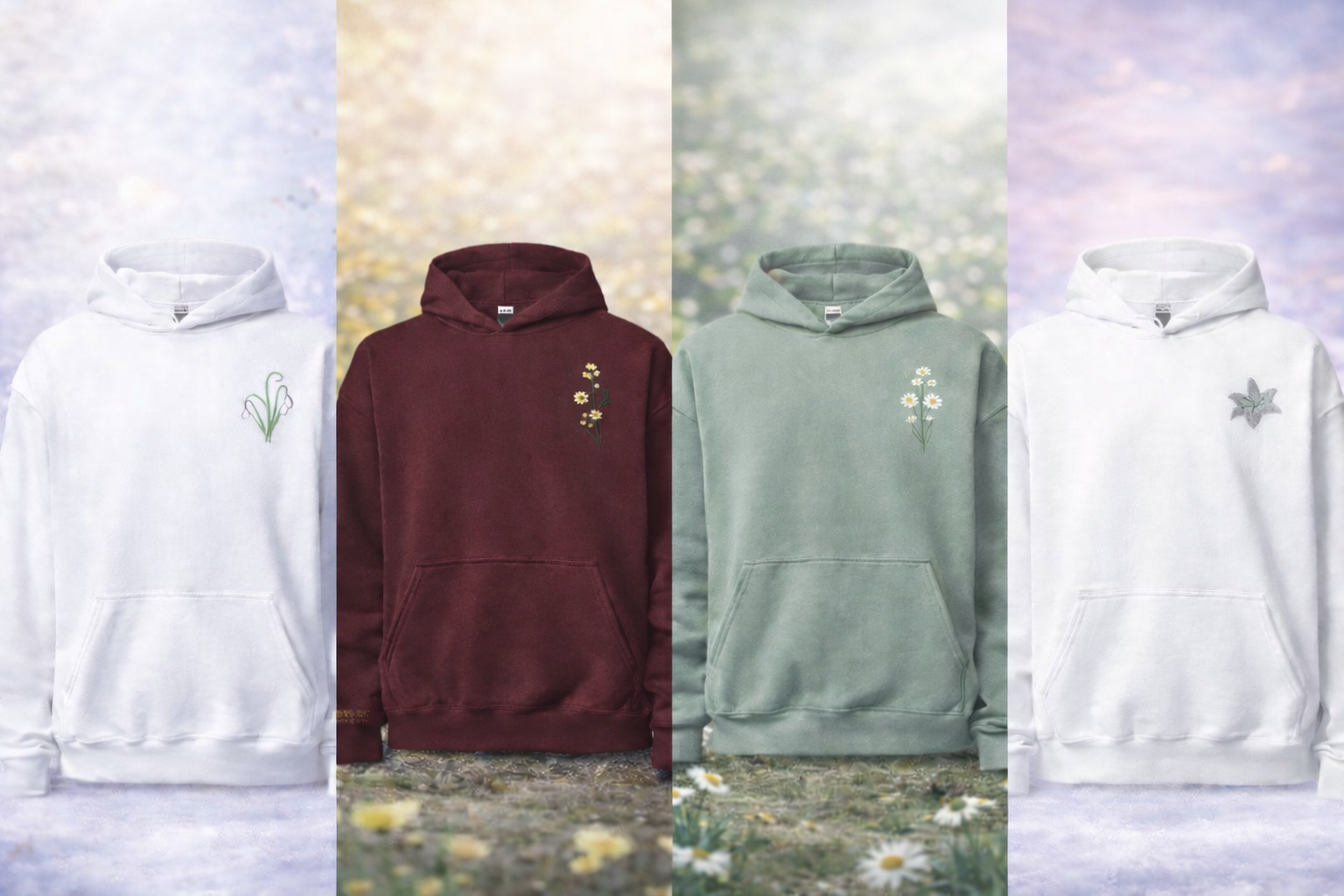 A pulóvereken található virágmintákhímzettek, nem nyomott grafikák.